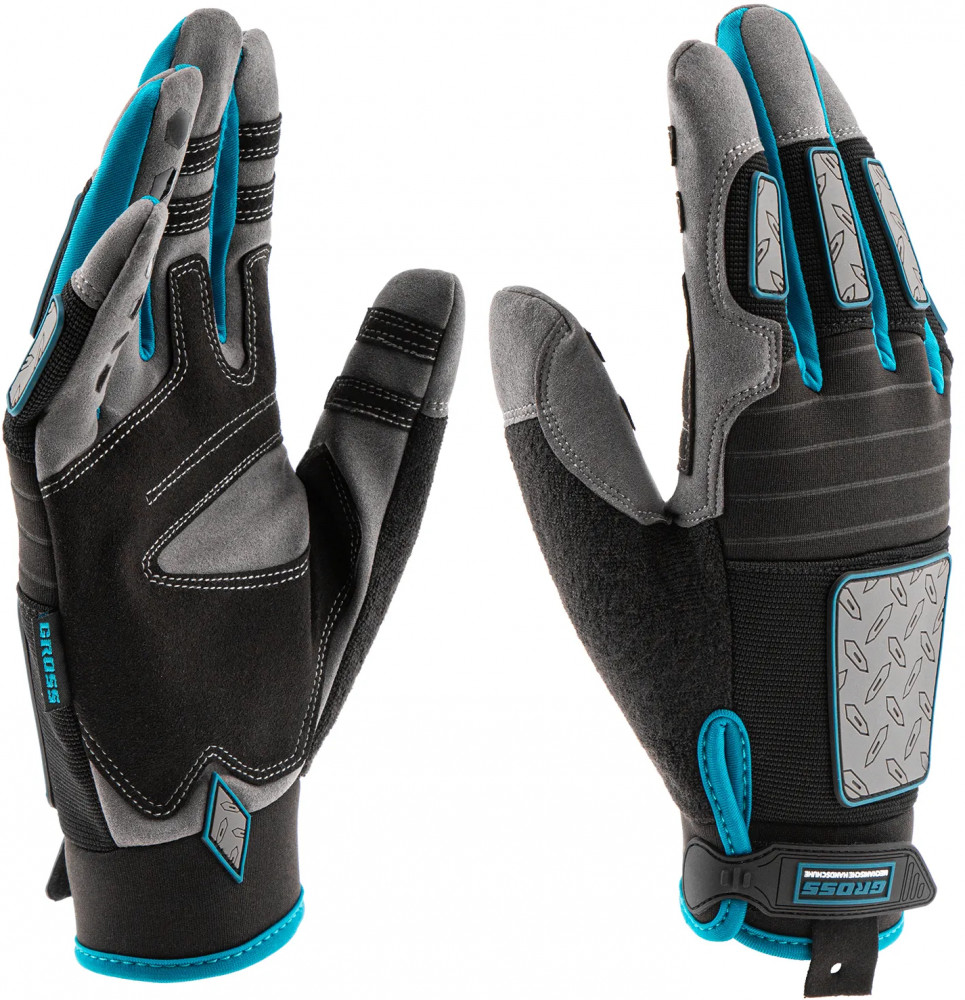 Универсальные усиленные перчатки Gross Deluxe с защитными накладками служат для защиты рук от механических повреждений и образования мозолей. Тонкие и износостойкие защитные накладки из ПВХ на тыльной стороне ладони и пальцах дополнительно предохраняют руки от механических повреждений. Формованные накладки на ладонях препятствуют появлению синяков и ссадин. Изделия могут использоваться при проведении строительных и ремонтных работ, а также во время занятий спортом или активного отдыха.
