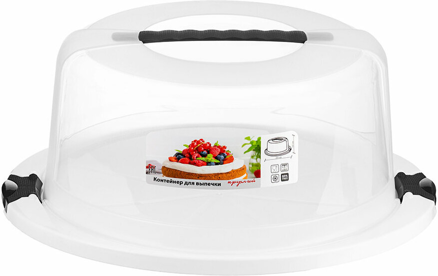 Посуду можно использовать для доставки пирога в гости, в офис, на пикник и не переживать за его целостность. Будет удобна для перевозки капкейков или пиццы в машине. Используйте контейнер круглой формы для печенья, пирогов, кексов, оладий, блинов и пирожных. Большая емкость подойдет не только для хранения выпечки и десертов, но и для интересной подачи овощей и фруктов на стол. Сняв крышку, можно использовать как сервировочное блюдо или поднос. Эргономичный дизайн позволит контейнеру занять место на вашей кухне в качестве хлебницы. Подходит для хранения пищи в холодильнике и морозильной камере.