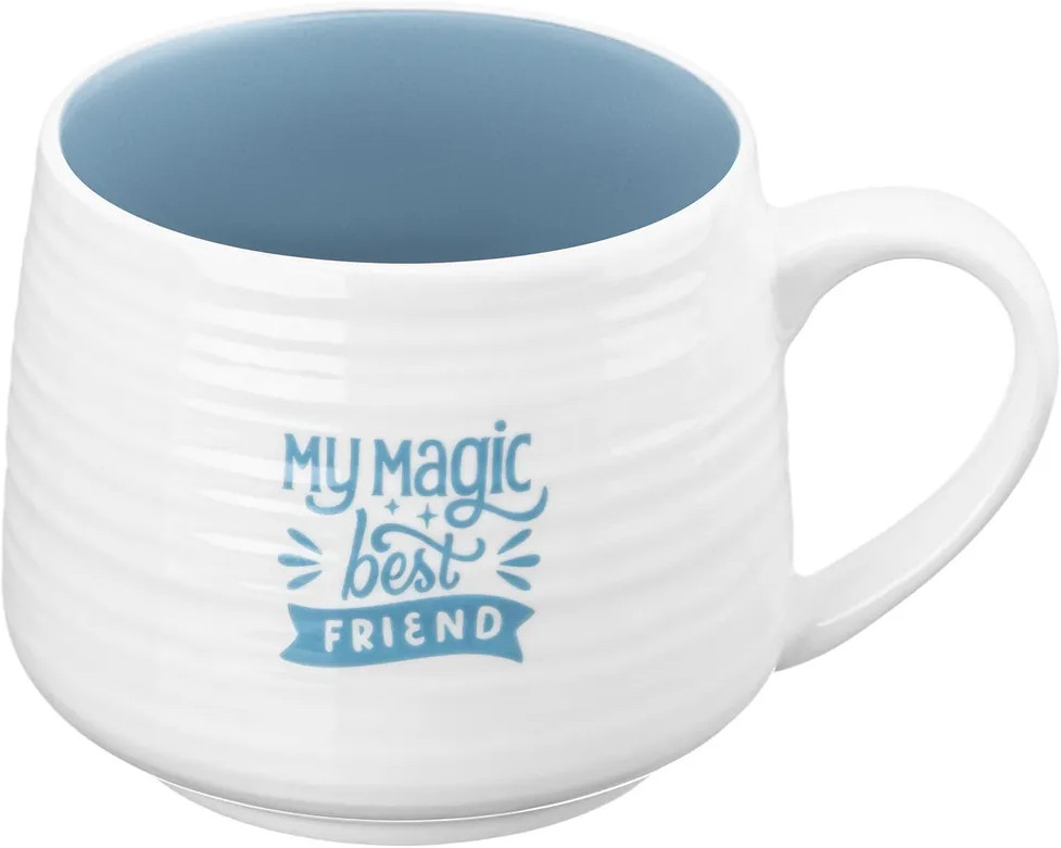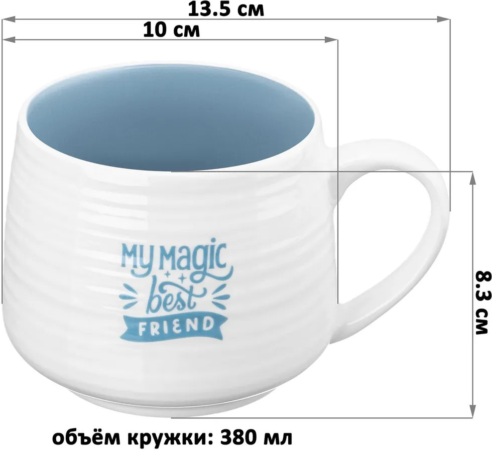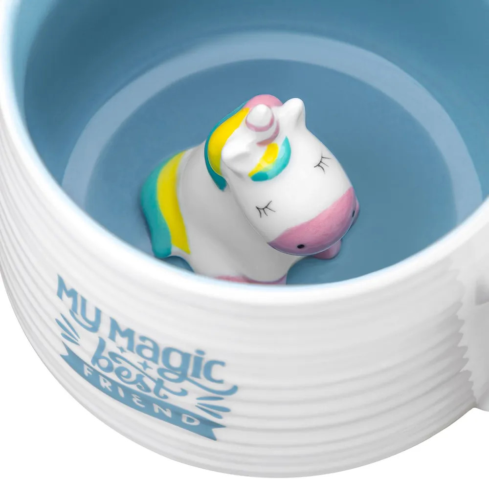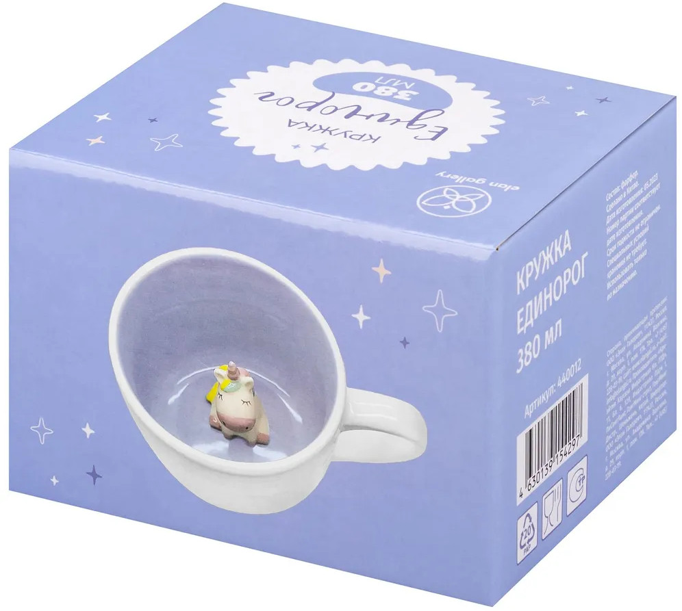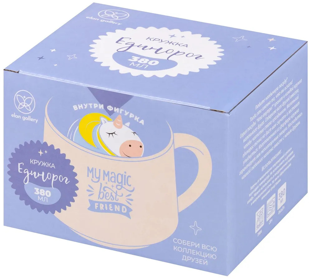 Кружка Elan Gallery «Единорог» с удивительной фигуркой на дне выполнена из белого фарфора. Забавная серия «Кто внутри?» хранит в каждой кружке маленького друга. Соберите всех друзей вместе, чтобы чаепитие стало настоящим праздником! Внутренняя стенка посуды окрашена в голубой цвет. Внешняя стенка кружки украшена принтом с надписью «My magic best friend». Необычная фигурка в виде единорога внутри кружки поднимет настроение взрослым и детям даже в пасмурный день!