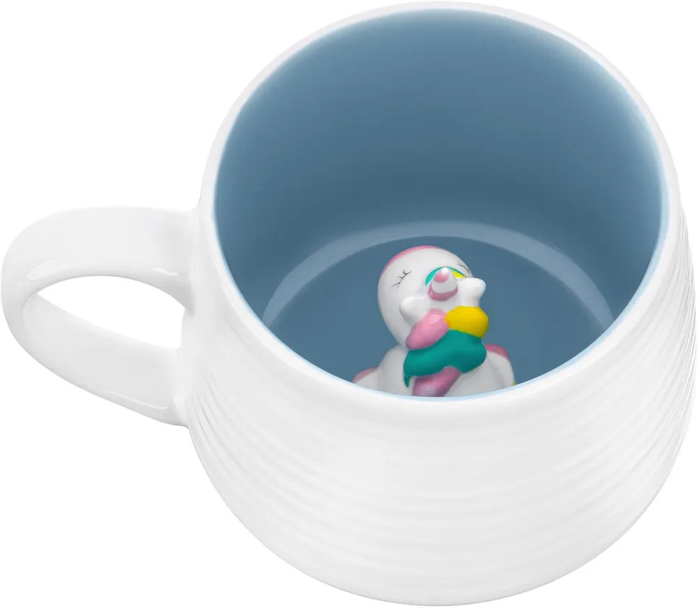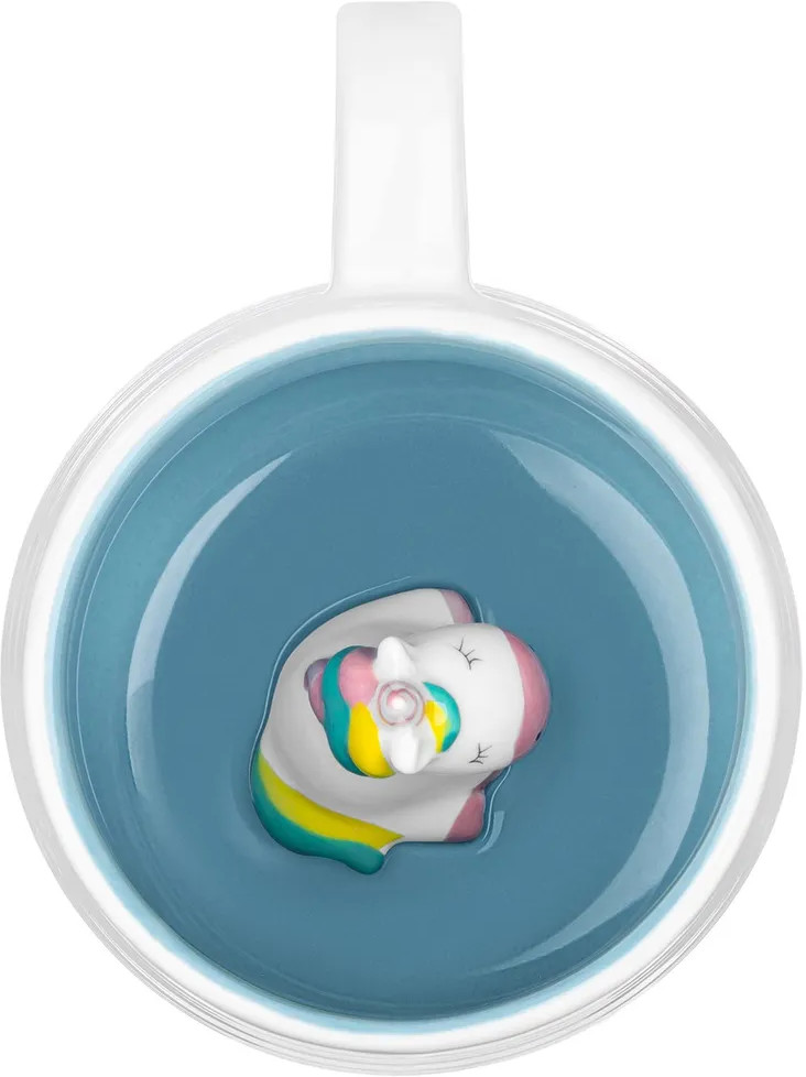 Кружечка с фигурой в форме животного на дне подходит ценителям чая и кофе, которые любят пить из красивой и необычной посуды. Её можно использовать как детскую, но также отлично подойдёт для взрослых женщин и мужчин. Это идеальный вариант для того, чтобы согреться горячим напитком зимой и освежиться прохладным лимонадом летом. Можно налить в неё какао и украсить мороженым, чтобы порадовать ребенка вкусным десертом. Интересная кружка с удобной ручкой украсит ваш стол своим смешным дизайном как на праздник, так и в будни. Цветная посуда из фарфора идеально впишется в любой интерьер вашей кухни.