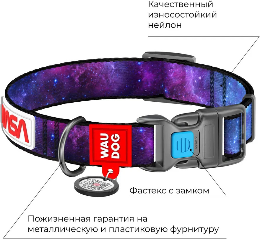 Waudog Ошейник для собак с QR-паспортом «Nasa 21»