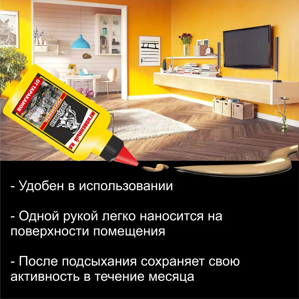 после одного применения (очень малого количества от бутылочки) не видела ни одного таракана в своем доме. очень рада такому решению. советую всем