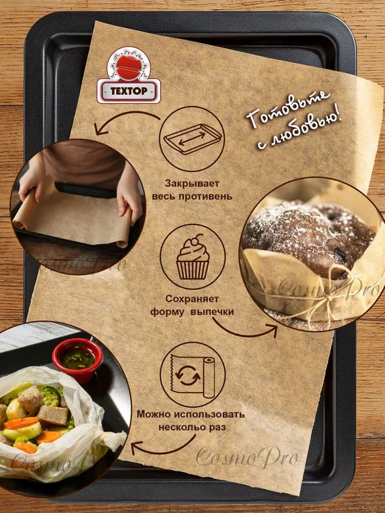 💳 Оплатить за товар можно при получении 🇰🇿 Есть бесплатная доставка по Казахстану от 1 дня 🎁 Копите бонусы с каждой покупки Бумага для выпечки Textop имеет силиконовое покрытие, предотвращающее прилипание и пригорание изделий. Готова к использованию, дополнительного смазывания жиром не требуется. Влаго и жиростойкая бумага коричневого цвета, имеющая высокую воздухопроницаемость, может использоваться и в духовке, и в микроволновой печи. Можно использовать при температуре 220 градусов. Ширина 38 см, длина намотки 50 м. |