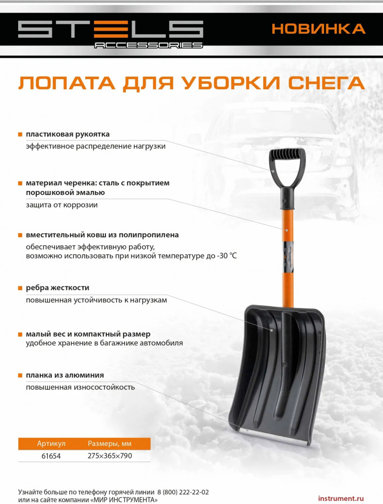 💳 Оплатить за товар можно при получении 🇰🇿 Есть бесплатная доставка по Казахстану от 1 дня 🎁 Копите бонусы с каждой покупки Автомобильная лопата Stels длиной 790 мм, с ковшом размером 275 х 365 мм, изготовленная из морозостойкого полипропилена, со стальным черенком, поможет освободить машину из снежного заноса, пригодится в дороге и в хозяйстве. Благодаря стальному черенку и ребрам жесткости выдерживает значительные нагрузки. |