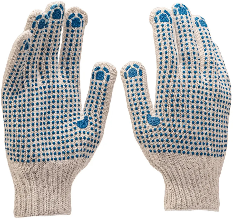 Трикотажные перчатки с 2-сторонней ПВХ-точкой, 7 класса вязки, предназначены для проведения ремонтных, строительных и механосборочных работ. Защищают руки мастера от травм и загрязнений. Изготовлены из пряжи 7 класса вязки, поэтому хорошо тянутся и легко надеваются. Перчатки будут полезны в промышленности, на строительной площадке, а также при выполнении погрузочно-разгрузочных и хозяйственных работ.