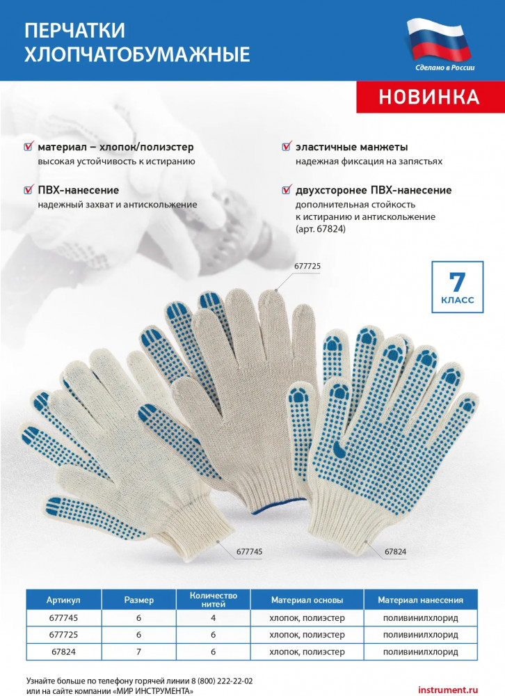• хороший воздухообмен — благодаря хлопчатобумажной основе руки в перчатках не потеют;