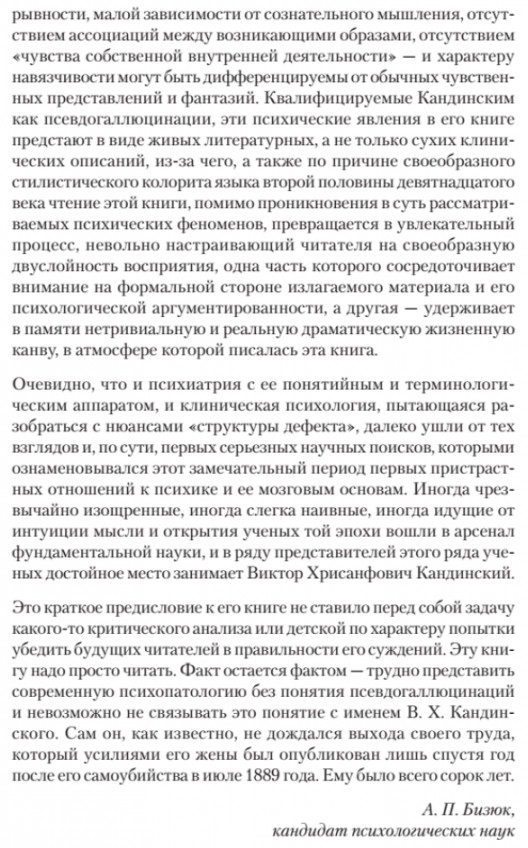 💳 Оплатить за товар можно при получении 🇰🇿 Есть бесплатная доставка по Казахстану от 1 дня 🎁 Копите бонусы с каждой покупки Серия: ПсихиART «О псевдогаллюцинациях» — главная работа недолгой творческой жизни основоположника русской психиатрии В. Х. Кандинского. Как одно из классических произведений психиатрической мысли, эта книга содержит не только рассказ о своем главном предмете — феномене псевдогаллюцинаций, но и клинические описания различных психопатологических состояний, многие из которых были сделаны автором на основании наблюдений за собственной болезнью. Эти описания не утратили своей актуальности до сих пор. |