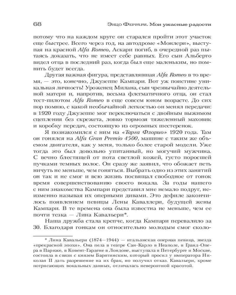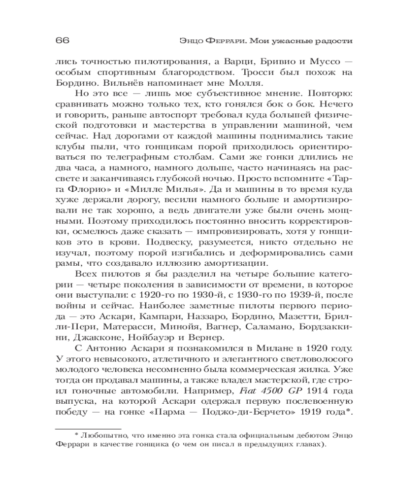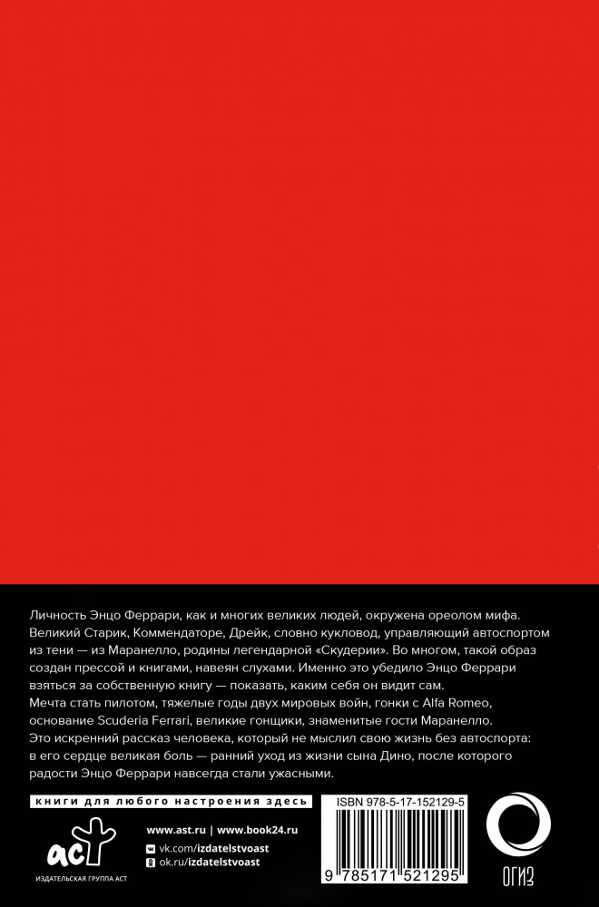 💳 Оплатить за товар можно при получении 🇰🇿 Есть бесплатная доставка по Казахстану от 1 дня 🎁 Копите бонусы с каждой покупки Серия: Большой спорт Личность Энцо Феррари, как и многих великих людей, окружена ореолом мифа. Великий Старик, Коммендаторе, Дрейк, словно кукловод, управляющий автоспортом из тени — из Маранелло, родины легендарной «Скудерии». Во многом такой образ создан прессой и книгами, навеян слухами. Именно это убедило Энцо Феррари взяться за собственную книгу — показать, каким себя видит он сам. |
