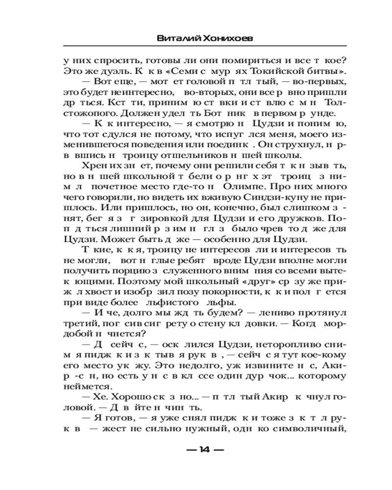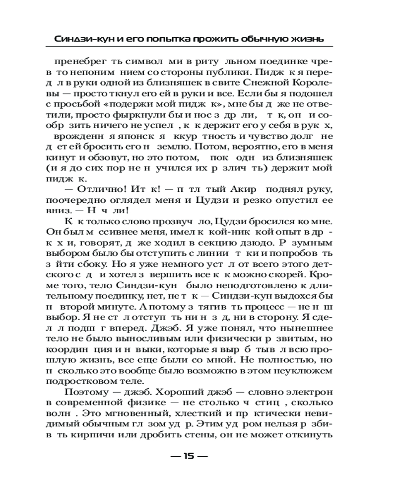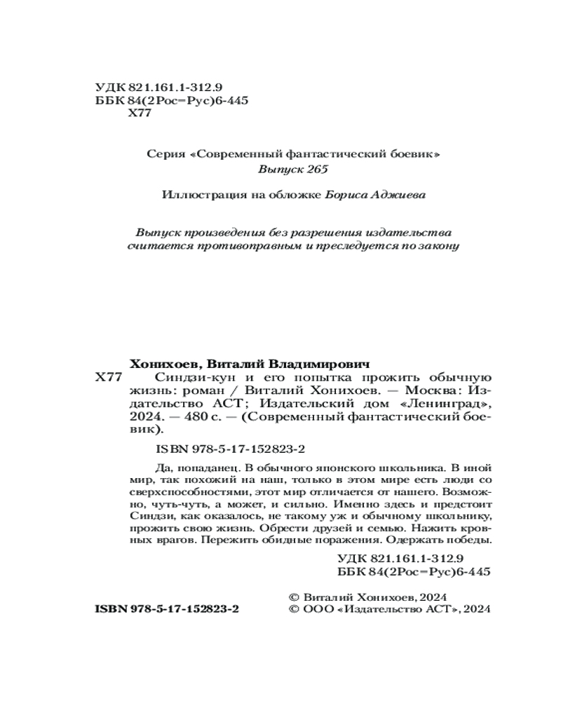 Синдзи-кун и его попытка прожить обычную жизньВ данный момент этот товар отсутствует в продаже. Возможно, у нас найдется аналогичный или похожий товар здесь. Серия: Современный фантастический боевик Да, попаданец. В обычного японского школьника. В иной мир, так похожий на наш, только в этом мире есть люди со сверхспособностями, этот мир отличается от нашего. Возможно, чуть-чуть, а может, и сильно. Именно здесь и предстоит Синдзи, как оказалось, не такому уж и обычному школьнику, прожить свою жизнь. Обрести друзей и семью. Нажить кровных врагов. Пережить обидные поражения. Одержать победы. |