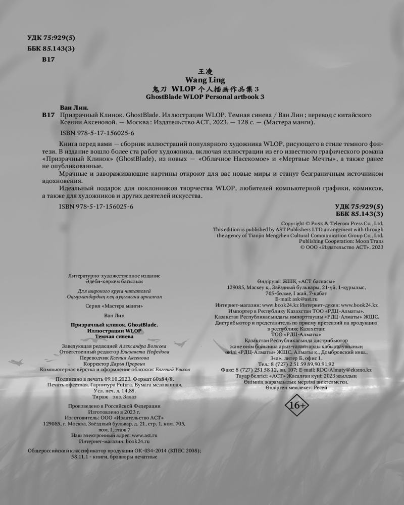 💳 Оплатить за товар можно при получении 🇰🇿 Есть бесплатная доставка по Казахстану от 1 дня 🎁 Копите бонусы с каждой покупки Серия: Мастера манги Книга перед вами — сборник иллюстраций популярного художника WLOP, рисующего в стиле темного фэнтези. В издание вошло более ста работ художника, включая иллюстрации из его известного графического романа «Призрачный Клинок» (GhostBlade), из новых — «Облачное Насекомое» и «Мертвые Мечты», а также ранее не опубликованные. |