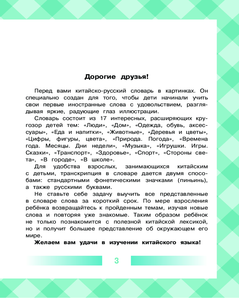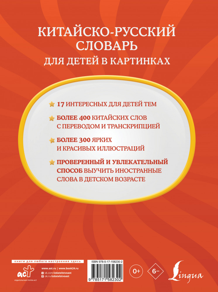 💳 Оплатить за товар можно при получении 🇰🇿 Есть бесплатная доставка по Казахстану от 1 дня 🎁 Копите бонусы с каждой покупки Серия: Детские словари в картинках Книга представляет собой детский тематический словарь, в котором более 400 китайских слов, разделенных на 17 интересных для детей тем и сопровождающихся яркими и красивыми иллюстрациями, а также переводом и двумя видами транскрипции — пиньинь и русскими буквами. Словарь в картинках — проверенный и увлекательный способ выучить первые иностранные слова в детстве. Издание предназначается для детей старшего дошкольного возраста, а также для родителей и учителей. |