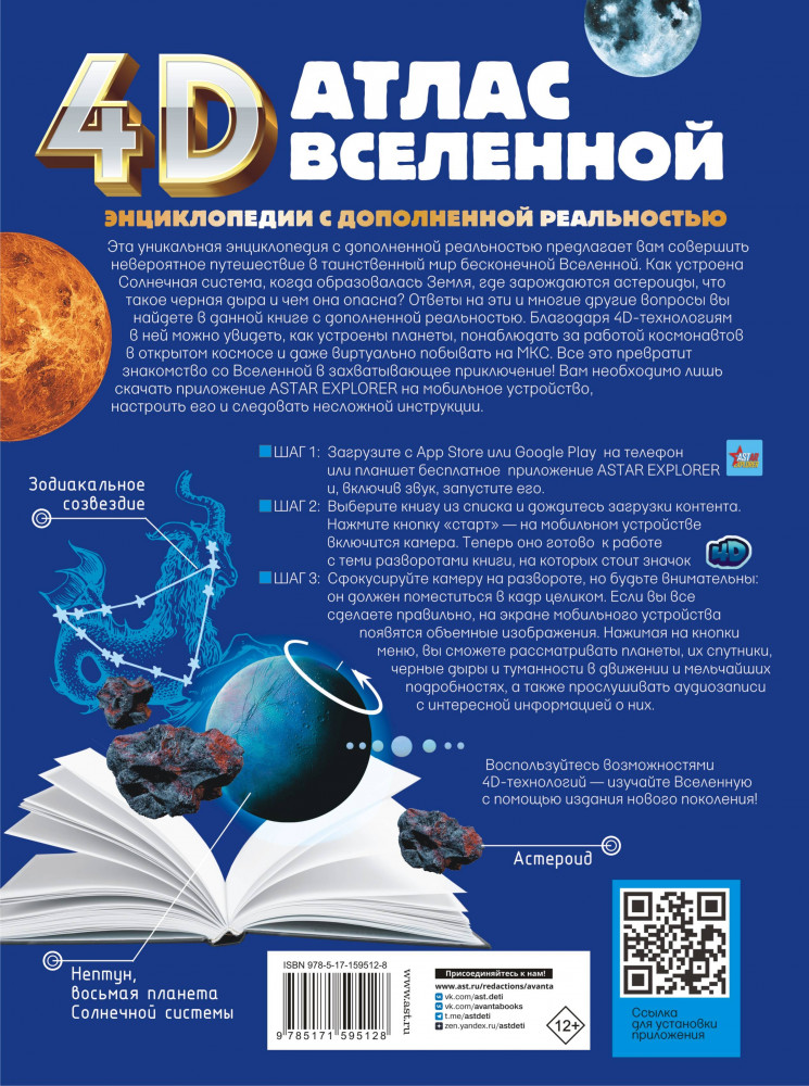 💳 Оплатить за товар можно при получении 🇰🇿 Есть бесплатная доставка по Казахстану от 1 дня 🎁 Копите бонусы с каждой покупки Серия: 4D энциклопедии с дополненной реальностью Вселенная бесконечна и многообразна. С древних времен она привлекала внимание людей своими |