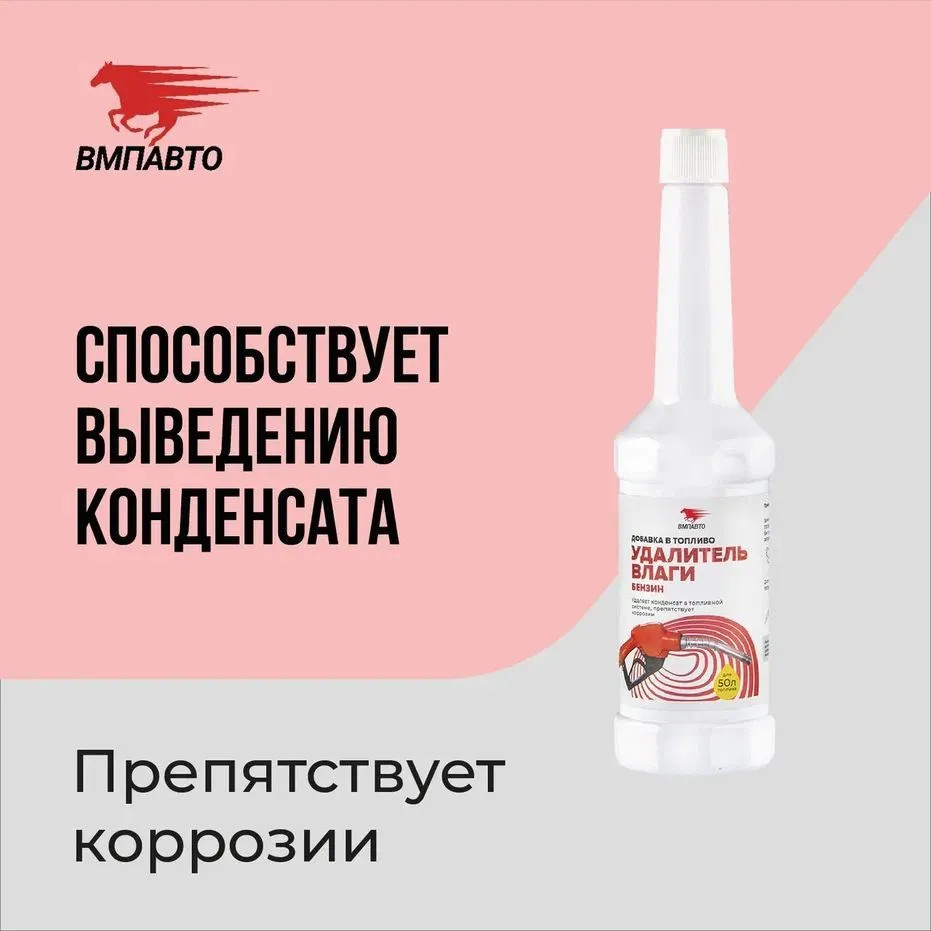 Удалитель влаги способствует выведению конденсата из топливного бака, предотвращая образование коррозии, ледяных пробок в топливных магистралях, фильтрах. Смешивается с любыми видами бензинового топлива. Предотвращает выделение и замерзание растворенной в топливе воды, уменьшает вероятность обледенения карбюраторов и топливных фильтров;, безопасно для резиновых, пластиковых, металлических элементов топливной системы; улучшает сгорание топлива, снижая токсичность отработанных газов; подходит для использования в инжекторных, карбюраторных бензиновых ДВС; безопасно для каталитических нейтрализаторов.