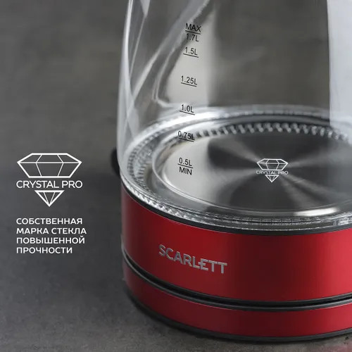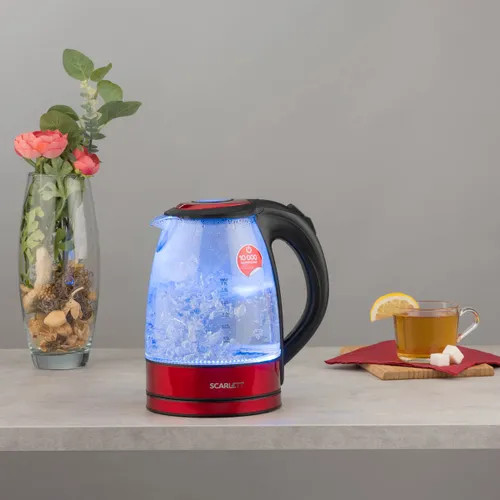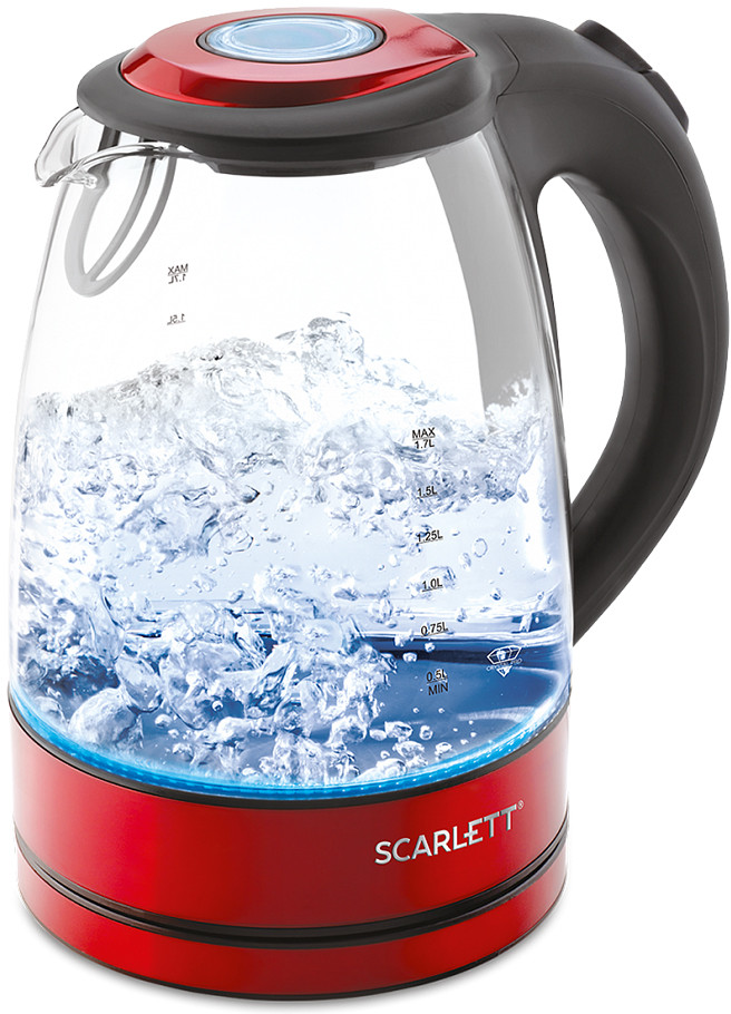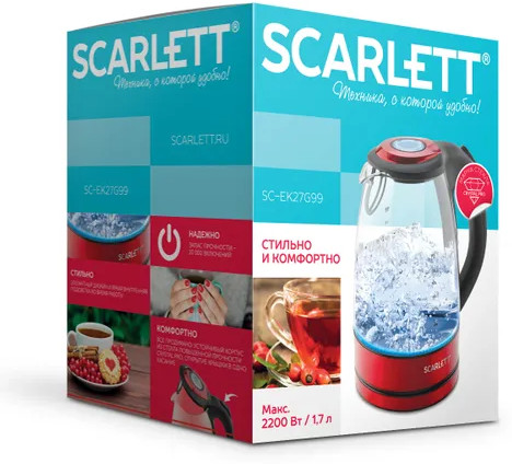 Электрический чайник SC-EK27G99 мощностью 1850-2200 Вт, объемом 1,7 л. Корпус из высококачественного термостойкого стекла не изменяет полезных свойств воды и позволяет наблюдать за завораживающим процессом кипячения.
