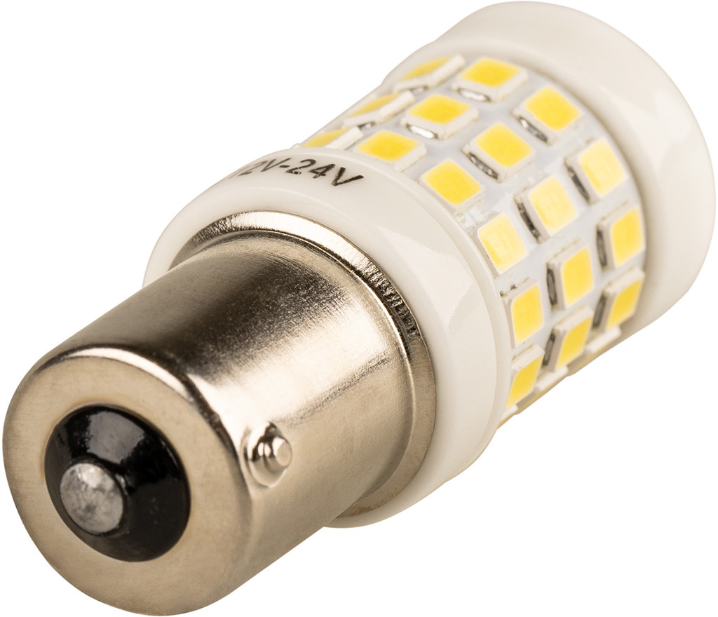 Автолампа диод S25(P21W) 12-24V 51SMD — это наиболее практичный выбор для автомобиля. На сегодняшний день светодиодные лампы представляют собой наиболее долговечный источник света. Они служат в 100 раз дольше обычных ламп, при этом не боятся перепадов температур (-60 до +60 °C), устойчивы к ударам и любым вибрациям. Лампы обладают одной особенностью: когда перегорает один светодиод, остальные продолжают свою работу. По своим размерам они достаточно компактны и имеют разные цветовые вариации, а благодаря низкому потреблению энергии, светодиодные лампы снижают нагрузку на генератор и аккумулятор автомобиля.