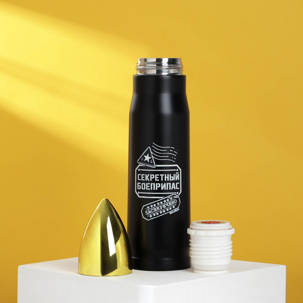 Mode Forrest Термос «Секретный боеприпас»В данный момент этот товар отсутствует в продаже. Возможно, у нас найдется аналогичный или похожий товар здесь. Идеальный аксессуар для любителей горячих напитков. Корпус изготовлен из высококачественной нержавеющей стали, которая защищает содержимое от внешних воздействий, а так же сохраняет вкус напитка неизменным. Крышку можно использовать в качестве чашки, она выполнена из безопасного для пищевых продуктов пластика. Оснащен завинчивающейся пробкой, предотвращающей протекания жидкости. Отлично подойдет в качестве подарка для мужчины. Уникальный дизайн и оригинальное исполнение термоса не оставят носителя равнодушным! |