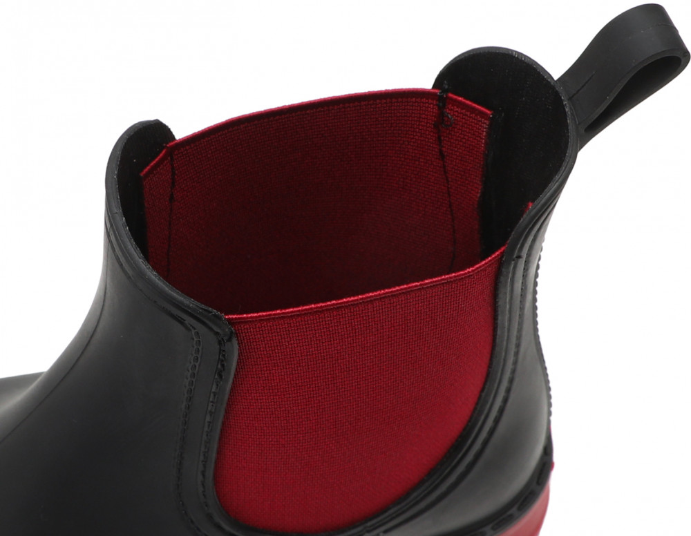 Женские ботинки из прочной резины с текстильными вставками. Подошва из резины, которая обеспечивает комфорт и прочность, не скользит. Толщина подошвы — 2 см. Способ соединения подошвы — литьевой. Без подкладки, стелька съемная, текстильная. Высота обуви — 14,5 см, объем голенища — 24 см.