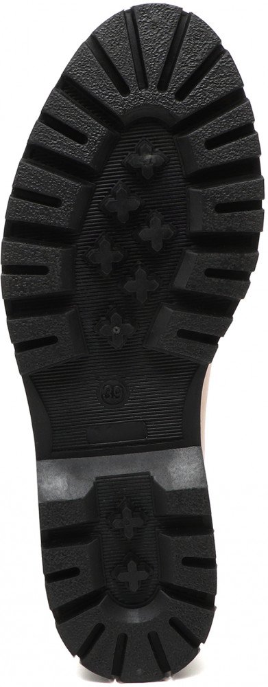 Женские ботинки из прочной резины с текстильными вставками. Подошва из резины, которая обеспечивает комфорт и прочность, не скользит. Толщина подошвы — 2 см. Способ соединения подошвы — литьевой. Без подкладки, стелька съемная, текстильная. Высота обуви — 14,5 см, объем голенища — 24 см.