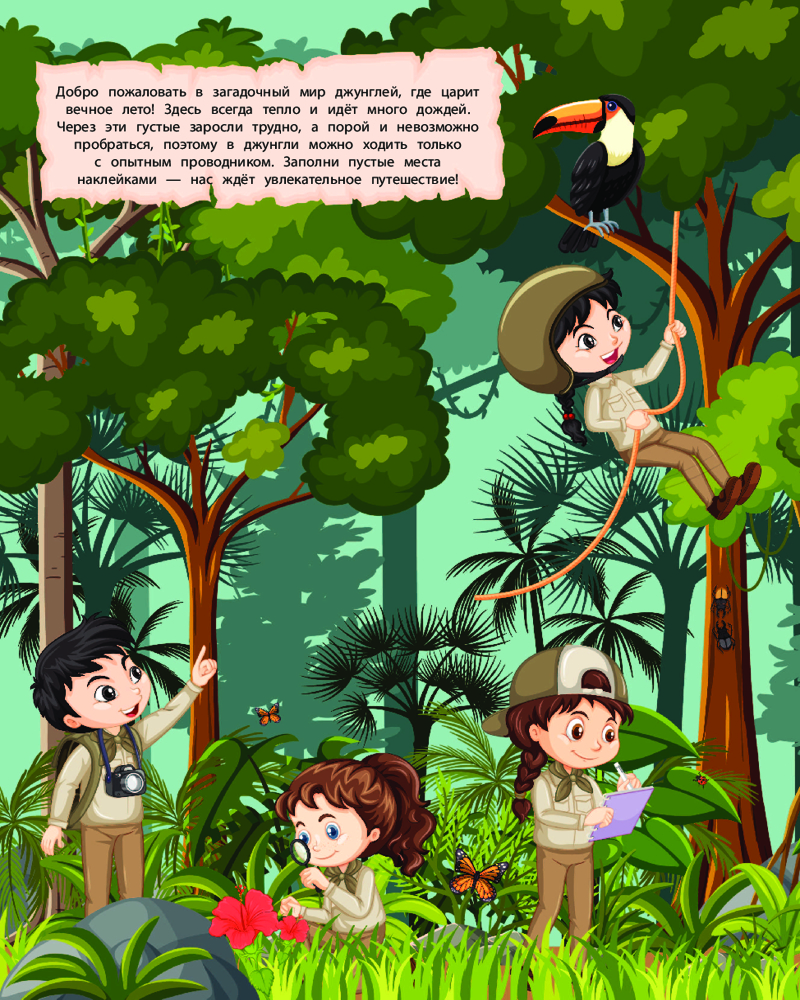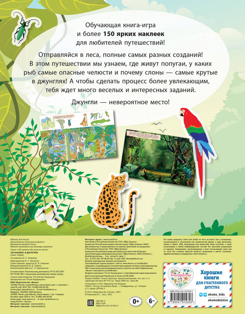 В данный момент этот товар отсутствует в продаже. Возможно, у нас найдется аналогичный или похожий товар здесь. Серия: 150 наклеек обо всем на свете «150 наклеек. В джунглях» — это увлекательная книга с наклейками, разработанная специально для детей в возрасте от 4 до 7 лет. В этой книге дети отправятся в захватывающее путешествие в джунгли, где им предстоит встретить удивительных животных и разнообразные растения. Страницы оживают благодаря 150 ярким и красочным наклейкам. Дети смогут создавать уникальные сцены с животными, заполнять лесные пространства разнообразной флорой и фауной, а также вносить свою фантазию и творчество в каждую страницу.