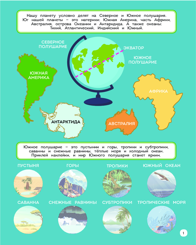 В данный момент этот товар отсутствует в продаже. Возможно, у нас найдется аналогичный или похожий товар здесь. Серия: 150 наклеек обо всем на свете Обучающая книга-игра и более 150 ярких наклеек для любознательных озорников! Отправляйся в невероятное путешествие по континентам южного полушария. Ты побываешь в саванне, тропических лесах и океанах, узнаешь, какая птичка самая маленькая на свете, где живут анаконды и как сурикаты спасаются от палящего солнца! |