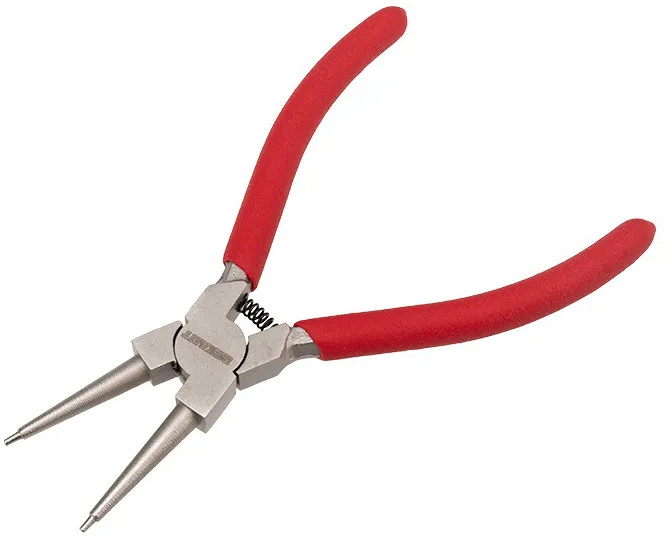 Съемник стопорных колец применяется для снятия внутренних колец и труднодоступных элементов. Рабочая часть выполнена из кованой хромованадиевой стали, что обеспечивает прочность и износостойкость. Специальная форма облегченных рукояток обеспечивает дополнительный комфорт при работе. Небольшие размеры инструмента позволяют выполнять работу в труднодоступных местах. Хром-ванадиевый сплав (Chrome Vanadium) CrV, из которого изготовлен инструмент, обладает такими свойствами, как прочность, жесткость и устойчивость к износу. Во время прокаливания он менее подвержен деформациям и потере первоначальной формы, чем другие типы инструментальной стали.