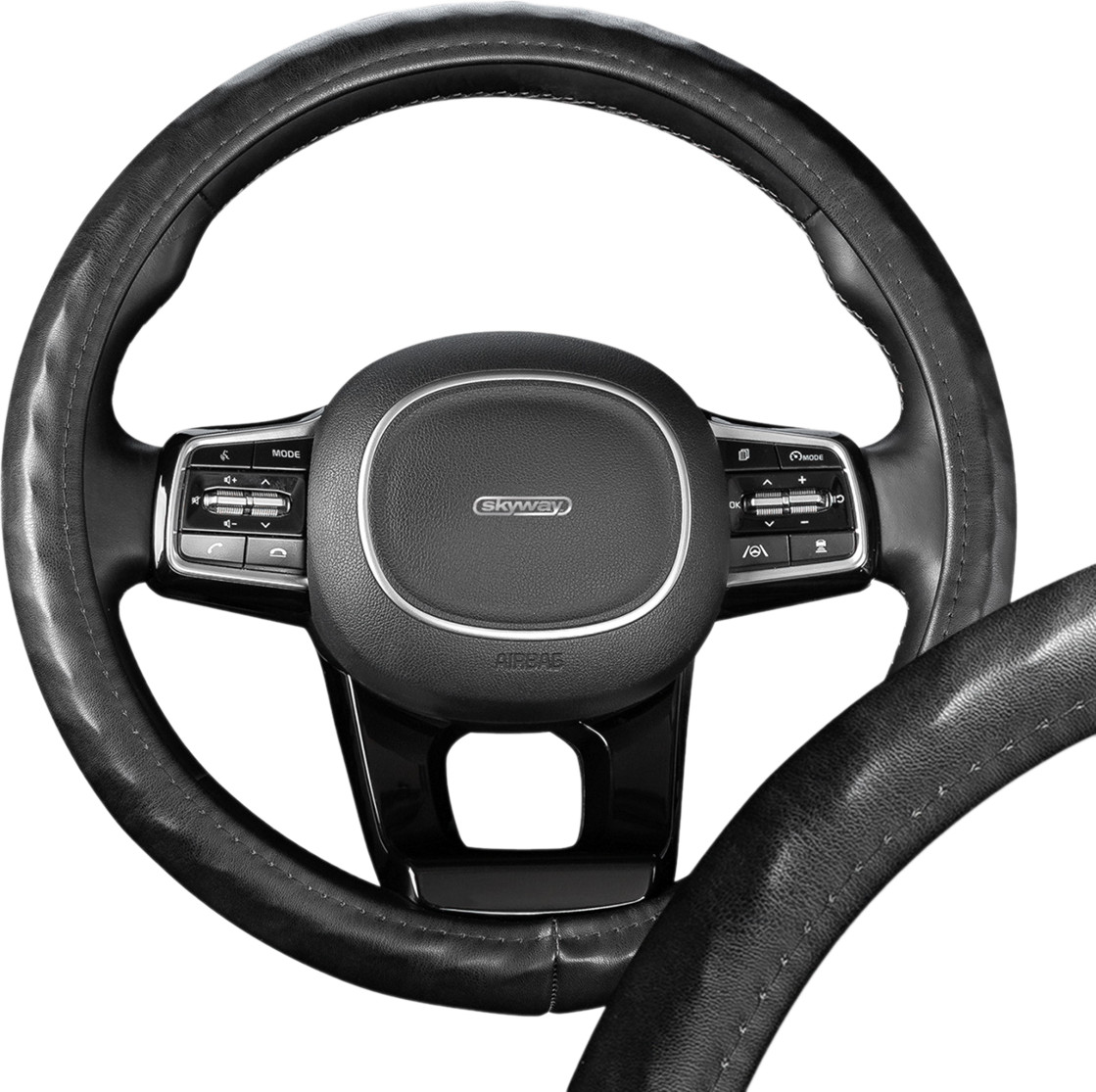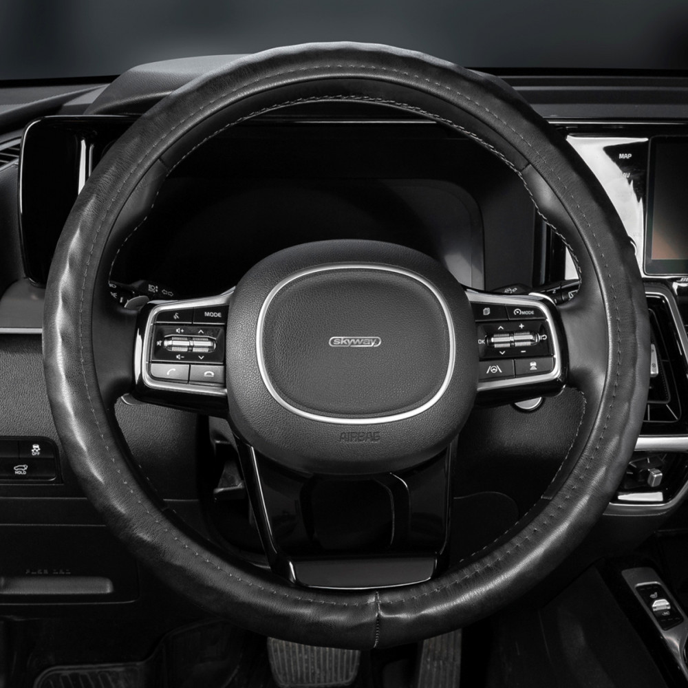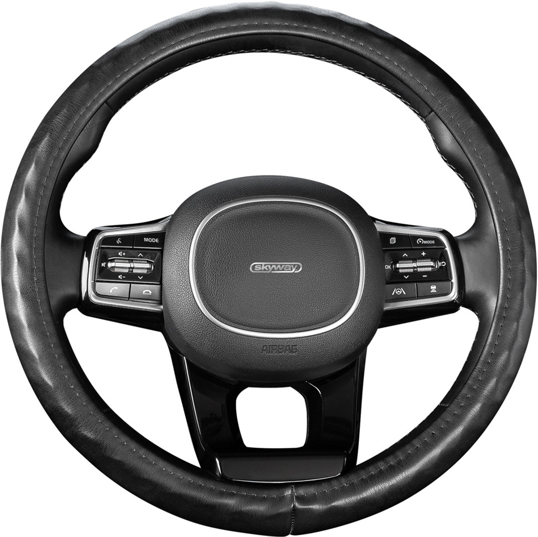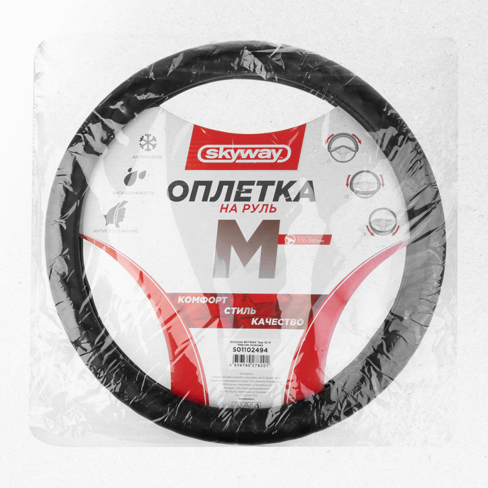 Оплетка SkywayTop-10 — современная классическая оплётка из экокожи. Скрывает имеющиеся потёртости и царапины, предотвращает появление новых. Обеспечивает надёжный контакт ладоней с ободом руля. Оплётка выполнена из высококачественной экокожи, которая сохраняет привлекательный внешний вид в течение длительного времени, проста в уходе, износостойкая. За счет многослойной структуры не нагревается при воздействии солнечных лучей, в зимнее время нехолодная на ощупь. Применение инновационных материалов на внутренней стороне оплетки исключает её проскальзывание. Аккуратно выполненные швы — гарантия высокой долговечности.