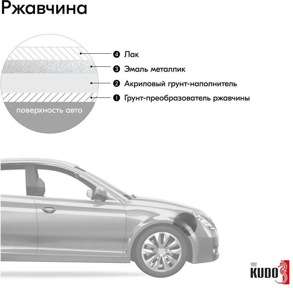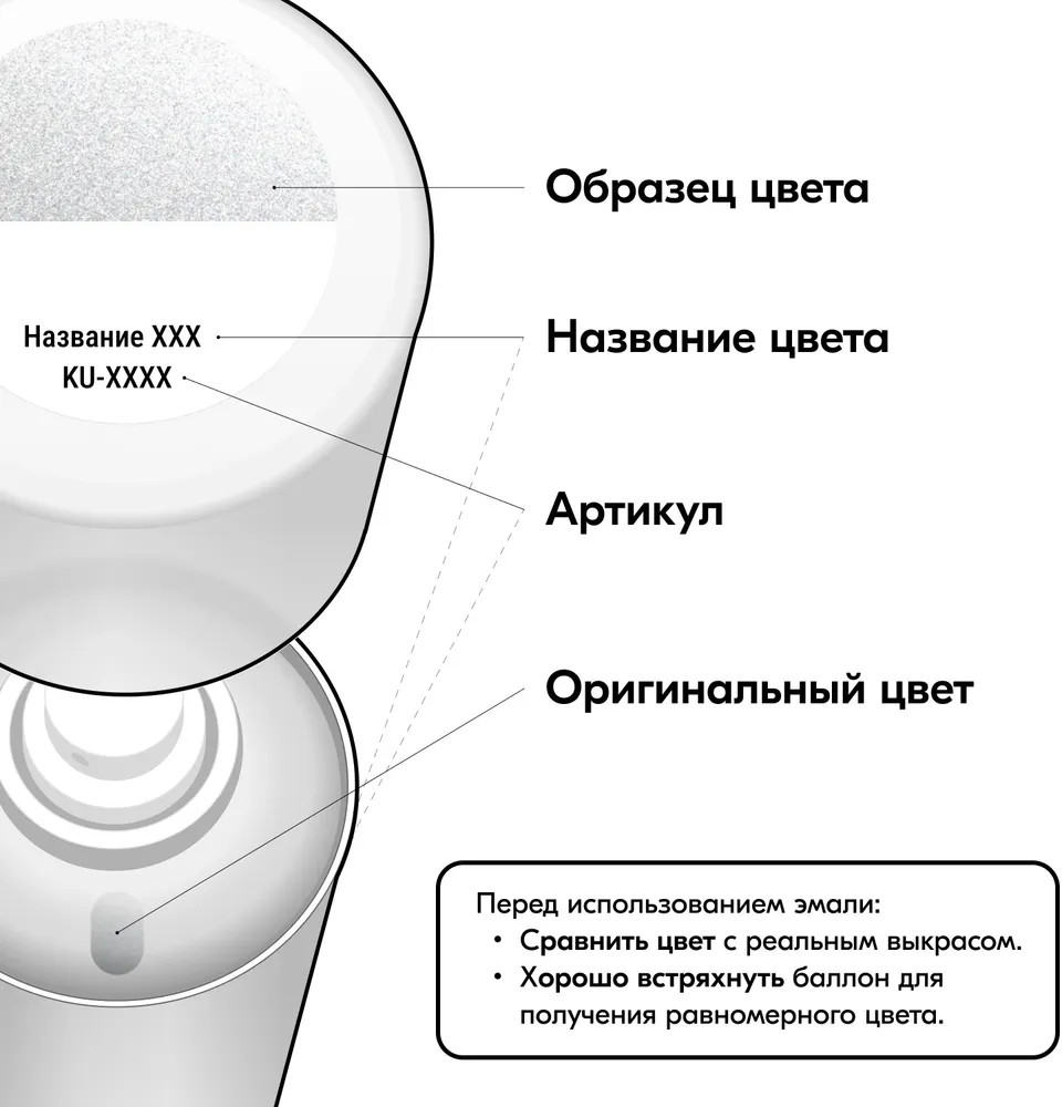 • эмаль не обладает поверхностной прочностью и атмосферостойкостью. Обязательно требуется нанесение защитного слоя прозрачного акрилового лака не ранее, чем через 15‑20 минут после нанесения последнего слоя эмали. Рекомендуется использовать автомобильный акриловый лак KUDO