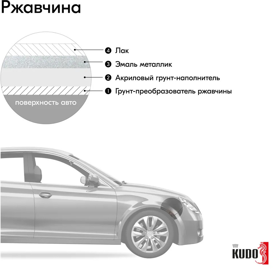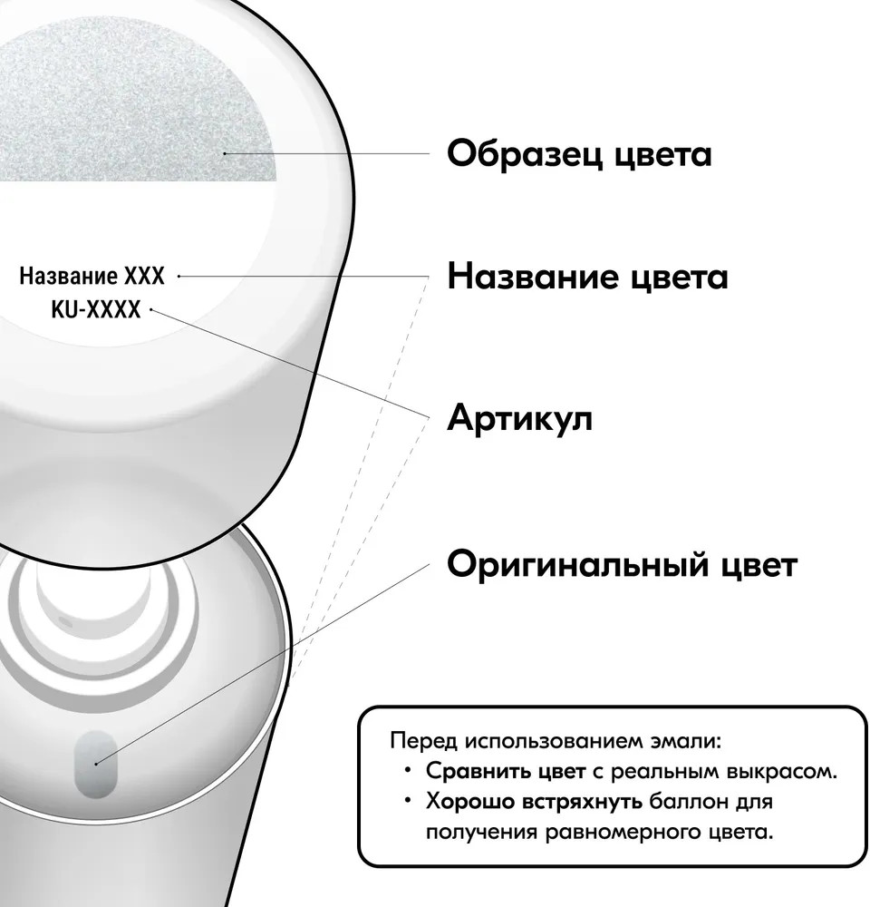 • эмаль не обладает поверхностной прочностью и атмосферостойкостью. Обязательно требуется нанесение защитного слоя прозрачного акрилового лака не ранее, чем через 15‑20 минут после нанесения последнего слоя эмали. Рекомендуется использовать автомобильный акриловый лак KUDO