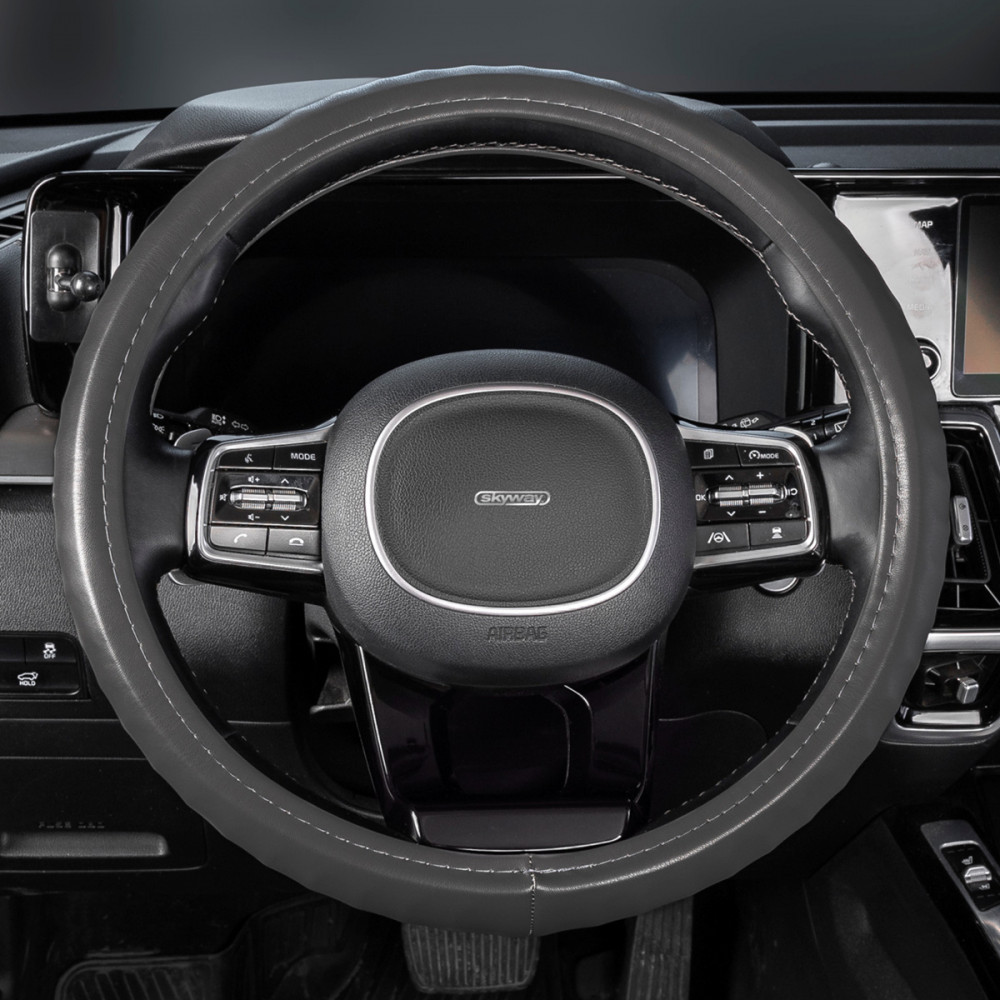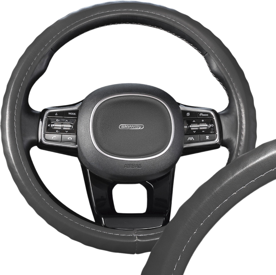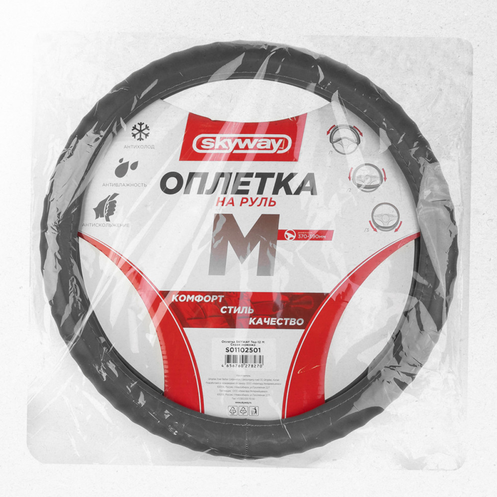 Оплетка Skyway Top-12— современная классическая оплётка из экокожи. Скрывает имеющиеся потёртости и царапины, предотвращает появление новых. Обеспечивает надёжный контакт ладоней с ободом руля. Оплётка выполнена из высококачественной экокожи, которая сохраняет привлекательный внешний вид в течение длительного времени, проста в уходе, износостойкая. За счет многослойной структуры не нагревается при воздействии солнечных лучей, в зимнее время нехолодная на ощупь. Применение инновационных материалов на внутренней стороне оплетки исключает её проскальзывание. Аккуратно выполненные швы — гарантия высокой долговечности.