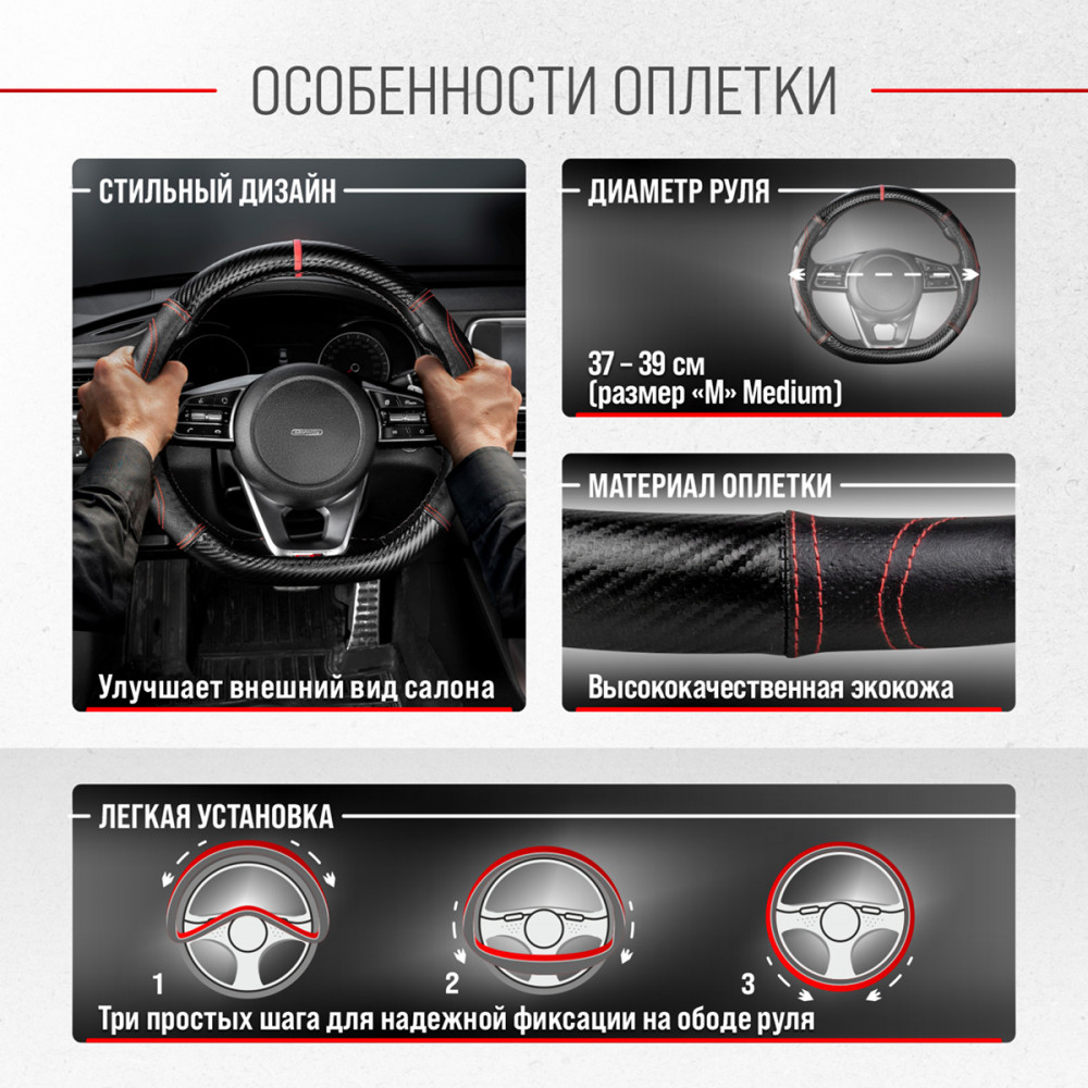 Рекомендации производителей: выбирайте оплетку под размер вашего рулевого колеса. Неверно выбранный размер может стать причиной проскальзывания оплётки или привести к невозможности снять или надеть её на руль.