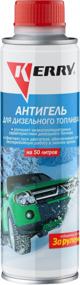 Антигель для дизельного топлива Kerry на 50л 270мл — эффективная комплексная депрессорно-диспергирующая присадка, существенно улучшающая низкотемпературные характеристики дизельного топлива. Блокирует рост кристаллов парафинов и препятствует их агломерации и осаждению, благодаря чему значительно понижаются Тз — температура застывания (гелеобразования), при которой топливо теряет текучесть, и ПТФ — предельная температура фильтруемости, при которой забивается фильтр. Предотвращает образование парафиновых отложений в фильтрах и других элементах топливной системы. Облегчает пуск дизельного двигателя и его надёжную устойчивую работу в зимнее время. На Тз и ПТФ влияет состав конкретного топлива и качества перемешивания антигеля в нём.