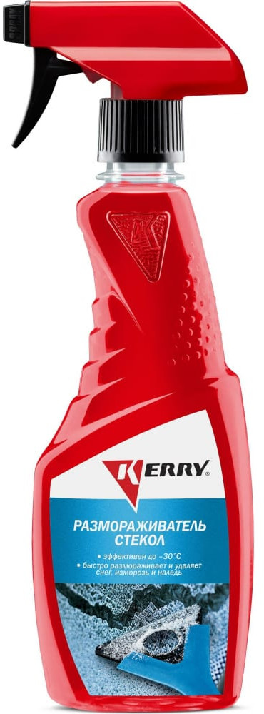 Размораживатель стёкол Kerry 500 мл триггер — быстро и эффективно удаляет снег, наледь и изморозь с зеркал, стекол и фар автомобиля, а также щеток стеклоочистителей и очистителей фар. Позволяет избежать царапин на стеклах, трещин и разрывов резиновых уплотнителей, которые появляются при устранении льда скребком. Сокращает время подготовки автомобиля к поездке (не требуется длительный прогрев салона). Не воздействует на лакокрасочное покрытие кузова машины, резиновые и пластиковые детали. Не оставляет разводов и не создает бликов на стекле.