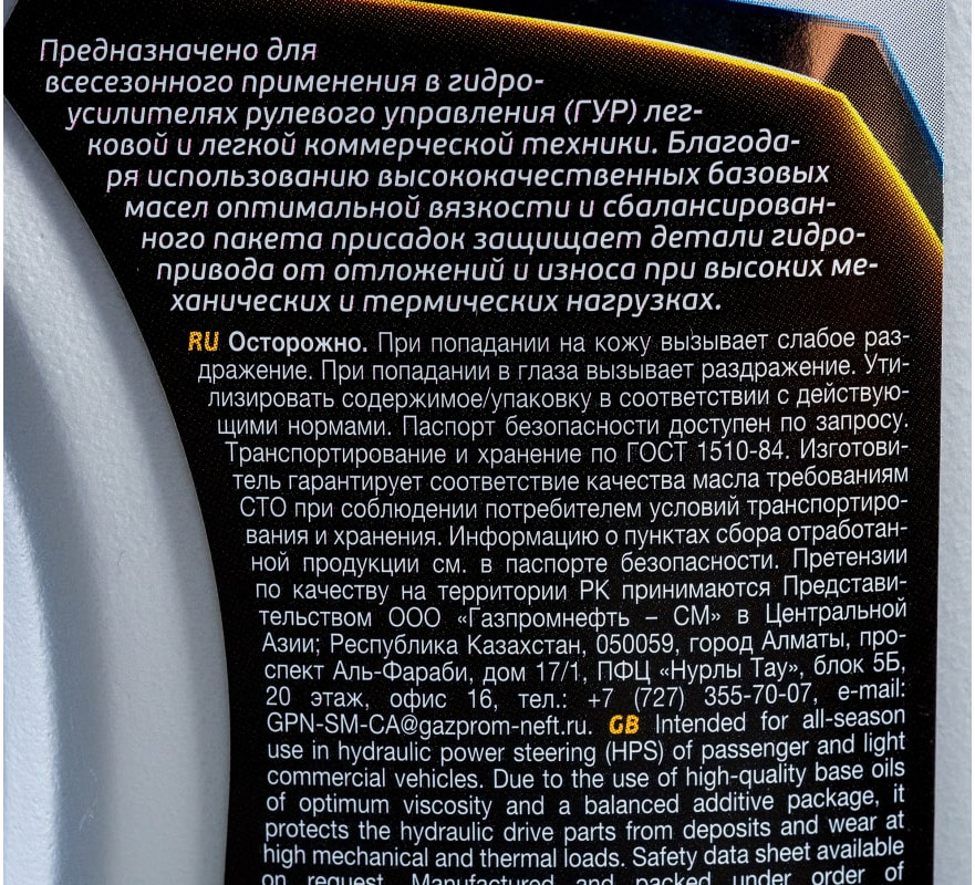 Gazpromneft Масло для гидроусилителя руля Gazpromneft PS Fluid