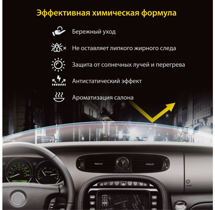 Внимание! Использовать при температуре не ниже +10 ̊С. Не распылять на горячей поверхности и под воздействием прямых солнечных лучей. Не рекомендуется применять на руле, ручке КПП, рычаге ручного тормоза и педалях — может вызвать скольжение в процессе эксплуатации.
