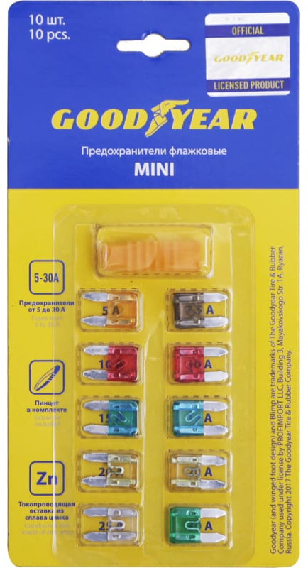 GoodYear Набор предохранителей флажковыхВ данный момент этот товар отсутствует в продаже. Возможно, у нас найдется аналогичный или похожий товар здесь. Набор плавких предохранителей Goodyear флажкового типа позволяет всегда оставаться уверенным в работоспособности электрических цепей автомобиля. Состоит из 10 предохранителей, применяемых в узлах электроцепей транспортных средств и электрооборудования. Каждый предохранитель состоит из изолирующего корпуса и плавкой вставки из сплава цинка, что обеспечивает точность срабатывания в процессе использования. Предохранители обладают легкой визуальной идентификацией перегоревшего элемента. |