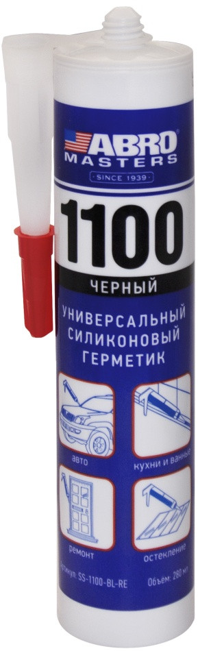 Герметик силиконовый Abro Masters черный (под пистолет) — однокомпонентный силиконовый герметик на основе уксусной кислоты. Содержит фунгицидные добавки, препятствующие образованию грибка и плесени. Подходит для внутренних и наружных работ, морозостойкий. После отвердевания становится водостойким, сохраняет эластичность, устойчив к механическим и температурным воздействиям (от −50 до +200 °С). Применяется для заделки и склеивания всех видов швов и стыков, подходит для вклеивания стекол. Может использоваться во всех случаях, где требуется изоляция от внешних воздействий, высокая влагостойкость и прочность. Обладает отличной адгезией к алюминию, стеклу, фарфору, каучуку, керамике, пластмассе, окрашенным поверхностям, не маслянистому дереву и металлу.