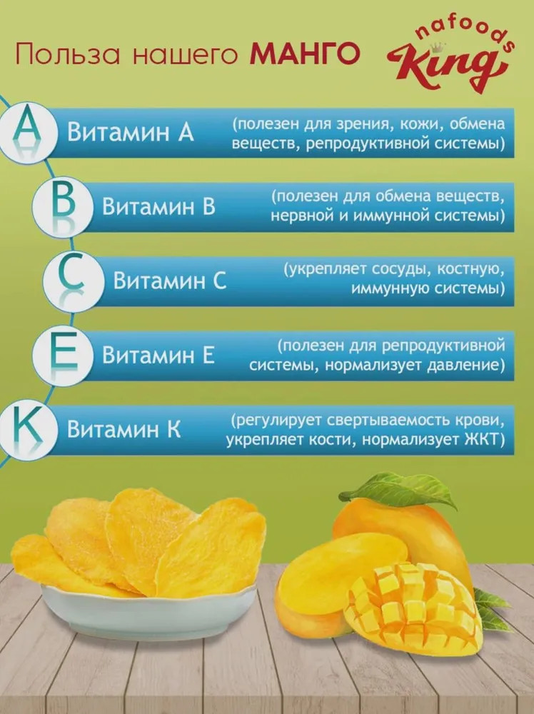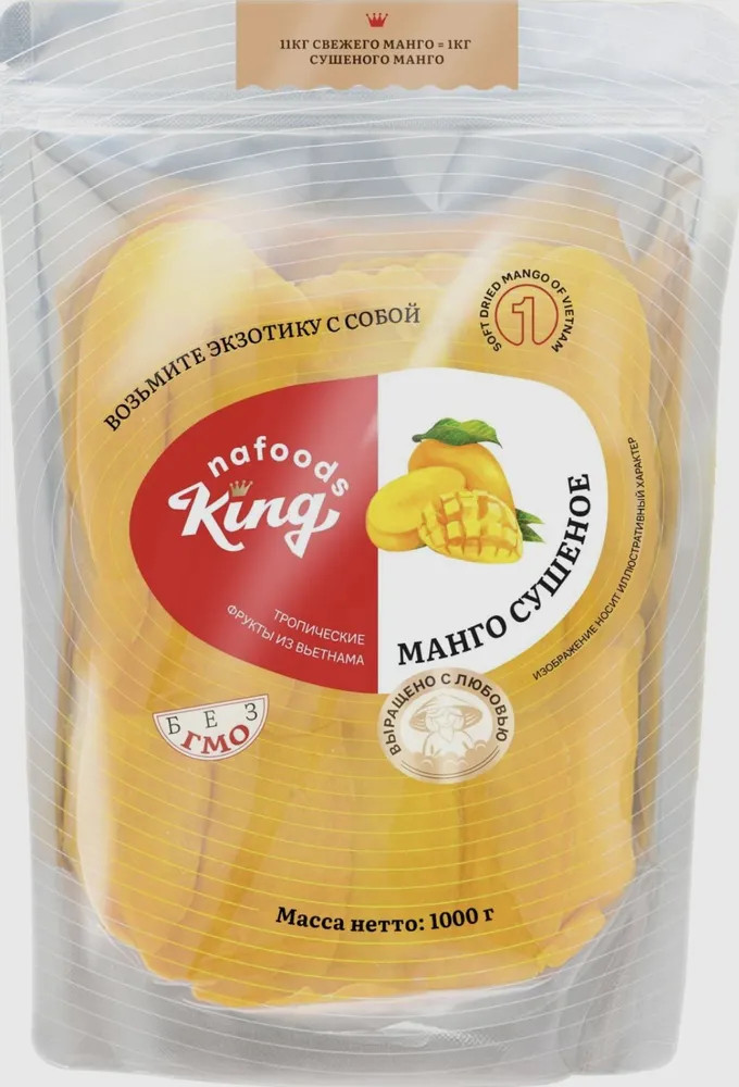 Сушёное манго King — отличный выбор! Вкусное, натуральное, без добавок. Прекрасное дополнение к чаю или полезный перекус. Рекомендую!