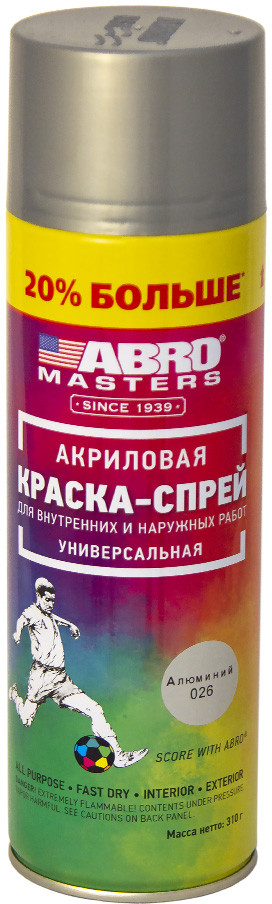 Краска-спрей Abro Masters — применяется для окраски металлических и деревянных поверхностей различных предметов как при внутренних (домашних), так и при наружных работах. После высыхания краска-спрей не токсична.