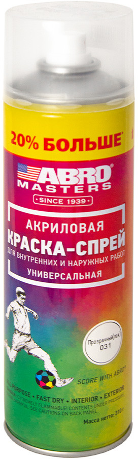 Краска-спрей Abro Masters — применяется для окраски металлических и деревянных поверхностей различных предметов как при внутренних (домашних), так и при наружных работах. После высыхания краска-спрей не токсична.
