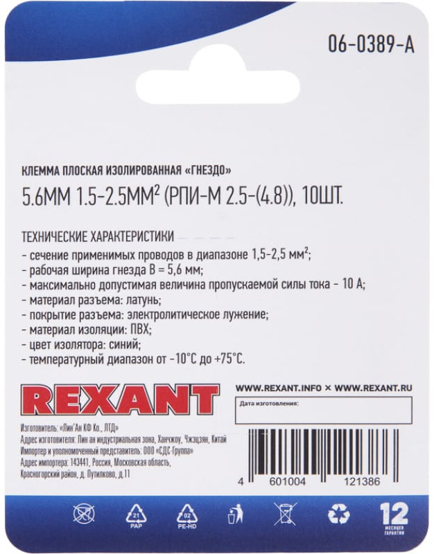 Представляем вам набор высококачественных плоских клемм гнездо, предназначенных для обеспечения надежного и безопасного соединения электрических проводов. Эти универсальные клеммы станут незаменимым инструментом в вашем электромонтаже, обеспечивая превосходное качество и надежность. Рабочая ширина гнезда W = 5,6 мм.