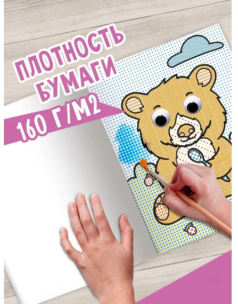 💳 Оплатить за товар можно при получении 🇰🇿 Есть бесплатная доставка по Казахстану 🎁 Копите бонусы с каждой покупки Серия водных раскрасок, которая обязательно заинтересует маленьких художников своей уникальной особенностью — пластиковыми глазками. Каждый персонаж на раскраске имеет глазки, благодаря которым они выглядят еще более милыми и забавными. Этот интересный детальный элемент позволяет детям оживить свои творения и добавить им весёлый и игривый вид. |