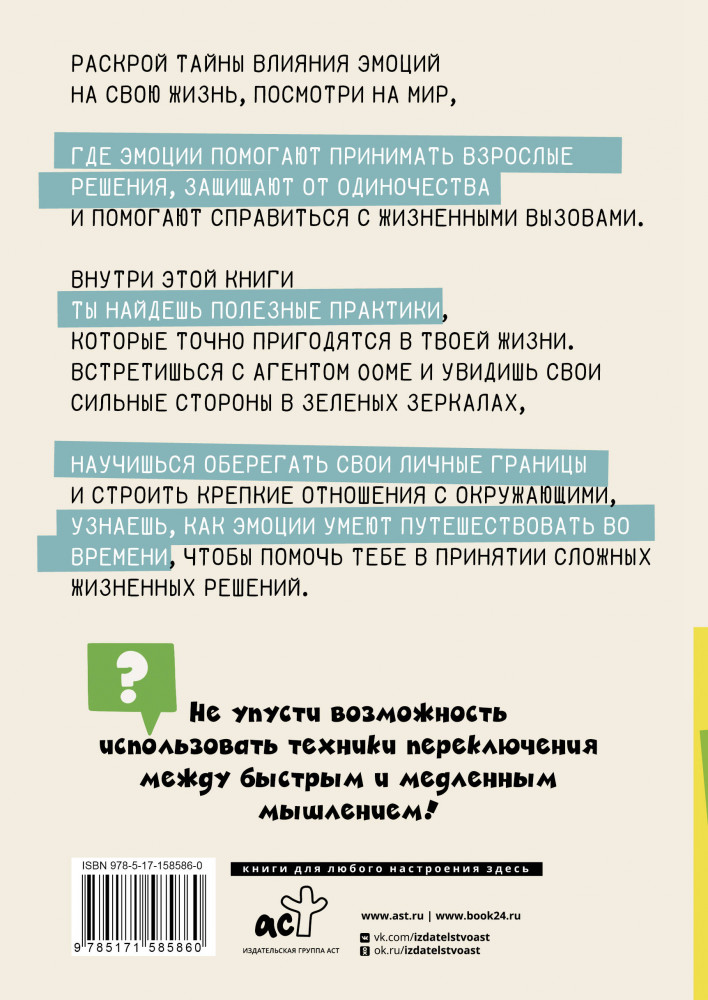 💳 Оплатить за товар можно при получении 🇰🇿 Есть бесплатная доставка по Казахстану 🎁 Копите бонусы с каждой покупки Серия: Психология Young Adult Раскрой тайны влияния эмоций на свою жизнь, посмотри на мир, где эмоции помогают принимать взрослые решения, защищают от одиночества и помогают справиться с жизненными вызовами. |