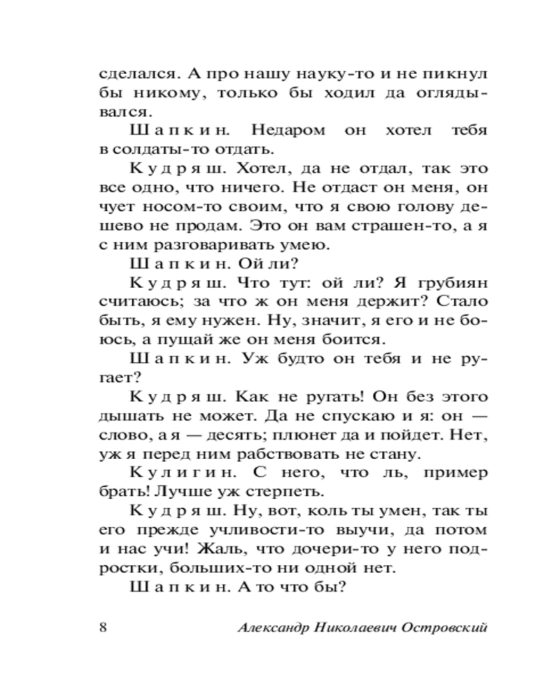 Родился в купеческой семье в Москве, там же получил образование на юридическом факультете университета. В 1843-1851 гг. служил в судебных учреждениях. Писать начал рано, среди наиболее известных произведений - пьесы "Свои люди сочтемся!" (1849), "Бедность не порок" (1853), "Доходное место" (1856), "Гроза" (1859), "Лес" (1870), "Бесприданница" (1878), "Таланты и поклонники" (1881), "Без вины виноватые"... |