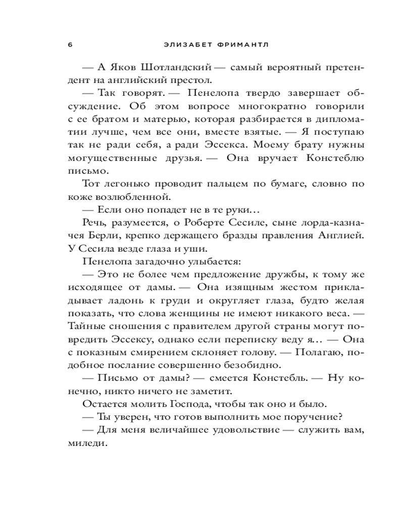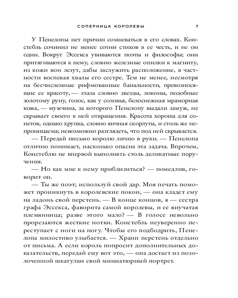 Для поэта Филипа Сидни она была музой, для королевы Елизаветы I — дочерью заклятого врага, для короля Якова — «красавицей с черной душой». Жизнь Пенелопы проходила в тени блестящих современников, но Элизабет Фримантл вывела героиню на авансцену.