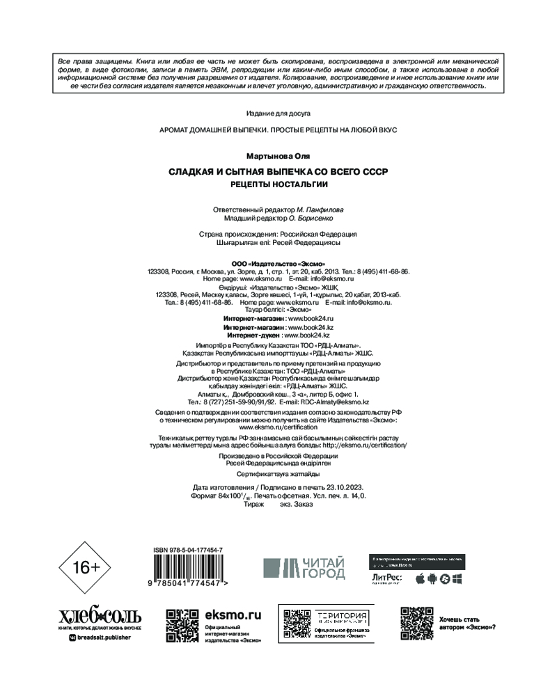 Сладкая и сытная выпечка со всего СССР. Рецепты ностальгииВ данный момент этот товар отсутствует в продаже. Возможно, у нас найдется аналогичный или похожий товар здесь. Серия: Аромат домашней выпечки. Простые рецепты на любой вкус В детстве деревья были большими, а лакомства — вкусными, будь то ореховые кольца, медовый чак-чак или праздничный «наполеон». На каникулах в Батуми можно было отведать хачапури и сочные хинкали, а в Узбекистане — самсу и абрикосовый пирог. |