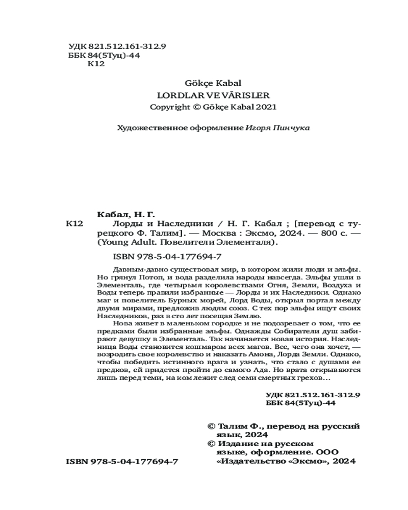 Эпическое турецкое фэнтези о противостоянии королевств эльфов и людей — маги Земли, Воды, Воздуха и Огня пишут заново кровавую историю Элементаля! Н.Г. Кабал — турецкая писательница, открывающая двери в уникальную вселенную, где Бог сотворил людей из земли, а эльфов из звездной пыли, но те не смогли ужиться вместе.