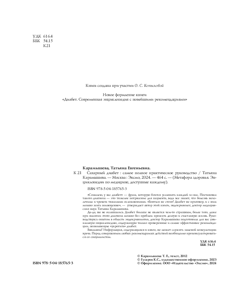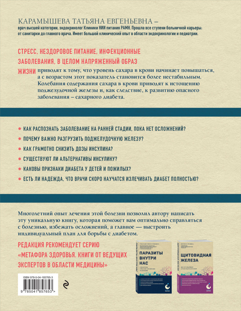 💳 Оплатить за товар можно при получении 🇰🇿 Есть бесплатная доставка по Казахстану от 1 дня 🎁 Копите бонусы с каждой покупки Серия: Метафора здоровья. Энциклопедии по медицине, доступные каждому Татьяна Карамышева — врач высшей категории, эндокринолог Клиники НИИ питания РАМН. |