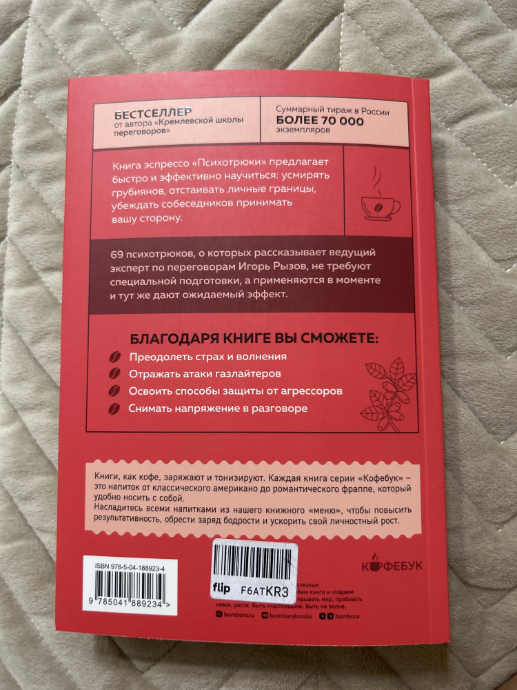 Серия: Кофебук. Книги которые бодрят и согревают Зарядитесь бодрящим эспрессо «Психотрюки» от Игоря Рызова — ведущего эксперта по переговорам, автора четырех бестселлеров, дважды победителя премии «Деловая книга года». |