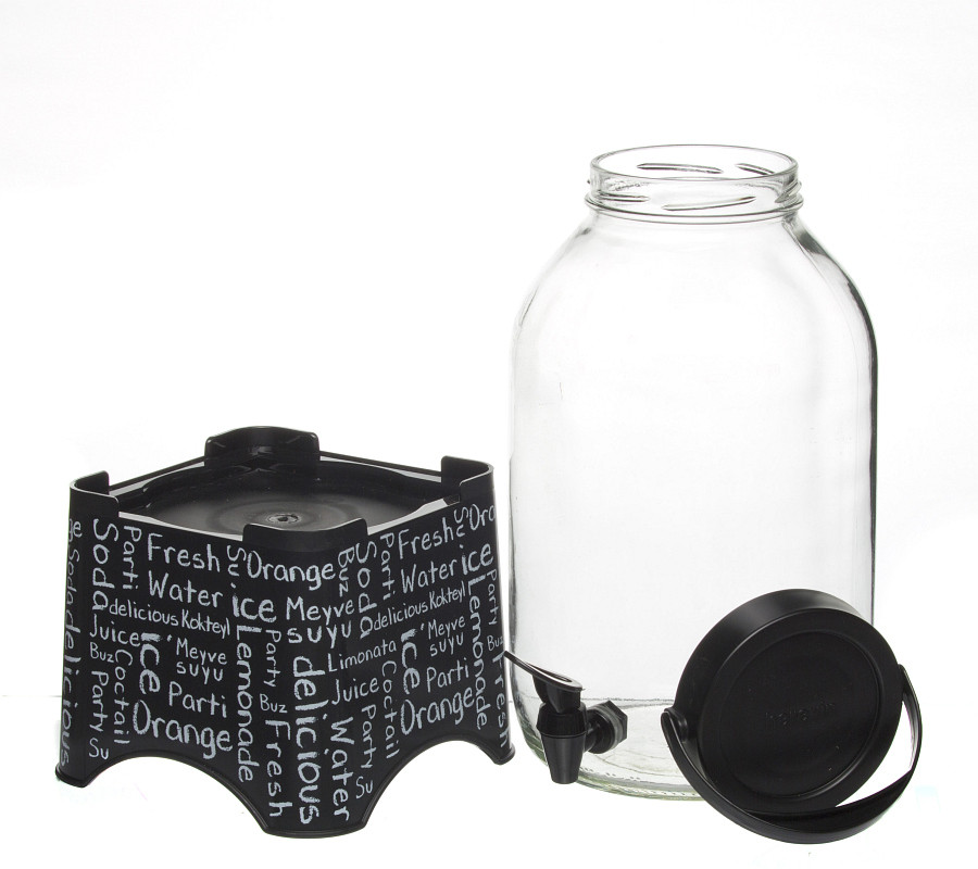 Емкость для напитков с краном изготовлена из прочного стекла и оснащена плотно закрывающейся пластиковой крышкой. Благодаря этому внутри сохраняется герметичность, и напитки дольше остаются свежими. Хранить в сухом, защищенном от влаги месте.