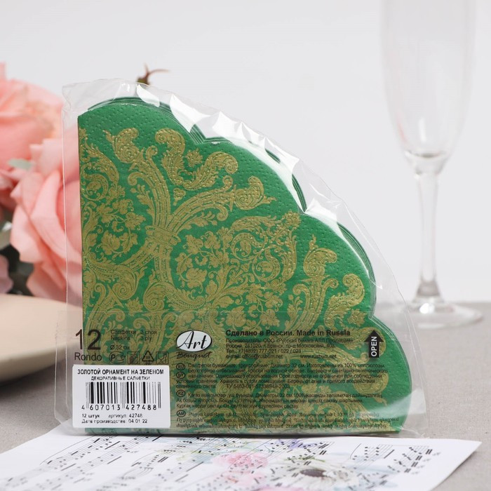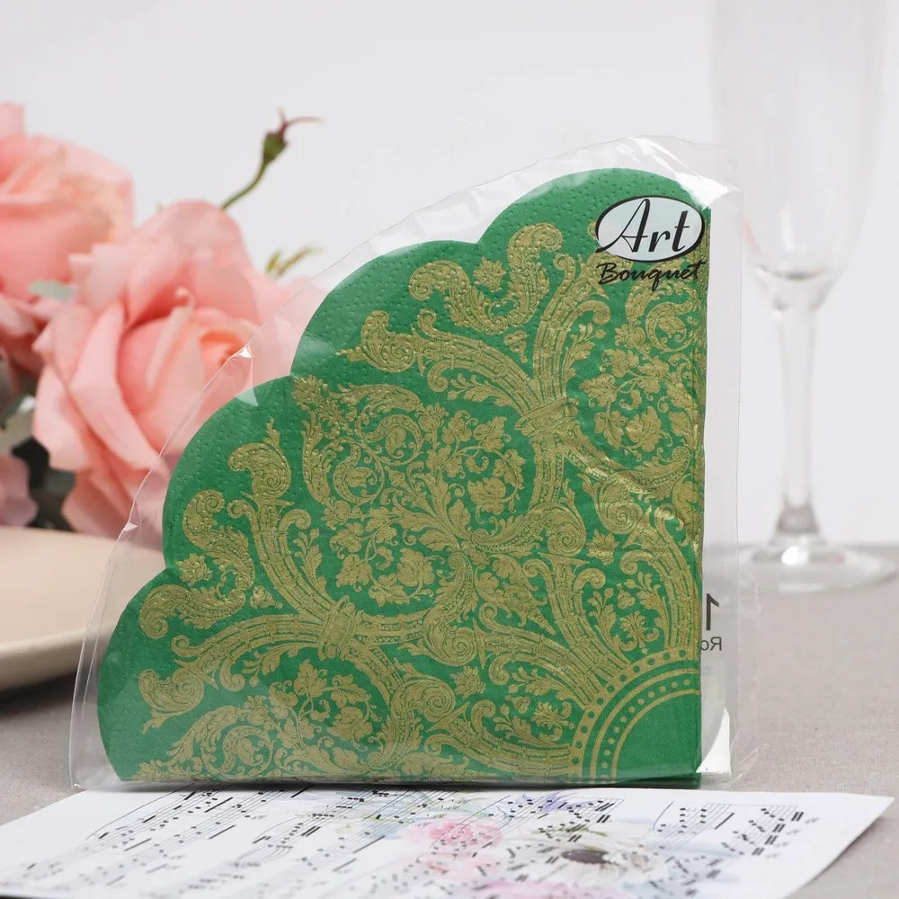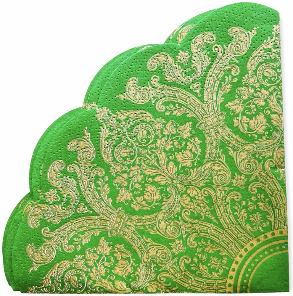 Art Bouquet Салфетки бумажные «Золотой орнамент на зеленом»+25 качество красивый дизайн шикарный вид
